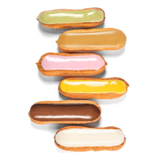 Klassische und modern interpretierte Eclairs aus feinem Brandteig – präzise gefüllt und ansprechend dekoriert.
