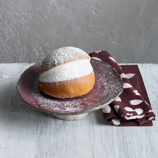 Der Maritozzo con panna ist ein echtes Highlight aus der italienischen Pasticceria-Tradition. Das luftig-weiche, leicht süße Hefebrötchen mit Butter und Honig wird großzügig mit frischer Schlagsahne (36 %) gefüllt und mit Puderzucker bestäubt. Verfeinert mit Vanille, Zitronen- und Orangenschale sowie der aromatischen Mandarinschale aus Ciaculli, verspricht der Maritozzo puren Genuss und Authentizität.