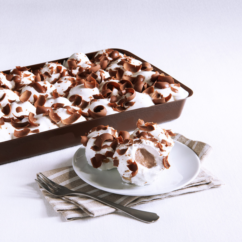In Italien und Frankreich sind Profiteroles – kleine Geschenke – ein Klassiker im Dessertangebot. Unsere Profiteroles bianco Vaschetta sind 24 kleine Brandteigkugeln umhüllt von einer leckeren weißen Creme und gefüllt mit herber Schokoladencreme. In der praktischen Kunststoff Schale sind sie nach kurzer Auftauzeit servierfertig. Sie punkten beim Gast als Dessert oder als Dolci zur Kaffeespezialität. Aber auch am süßen Buffet machen die Profiteroles immer eine gute Figur.
